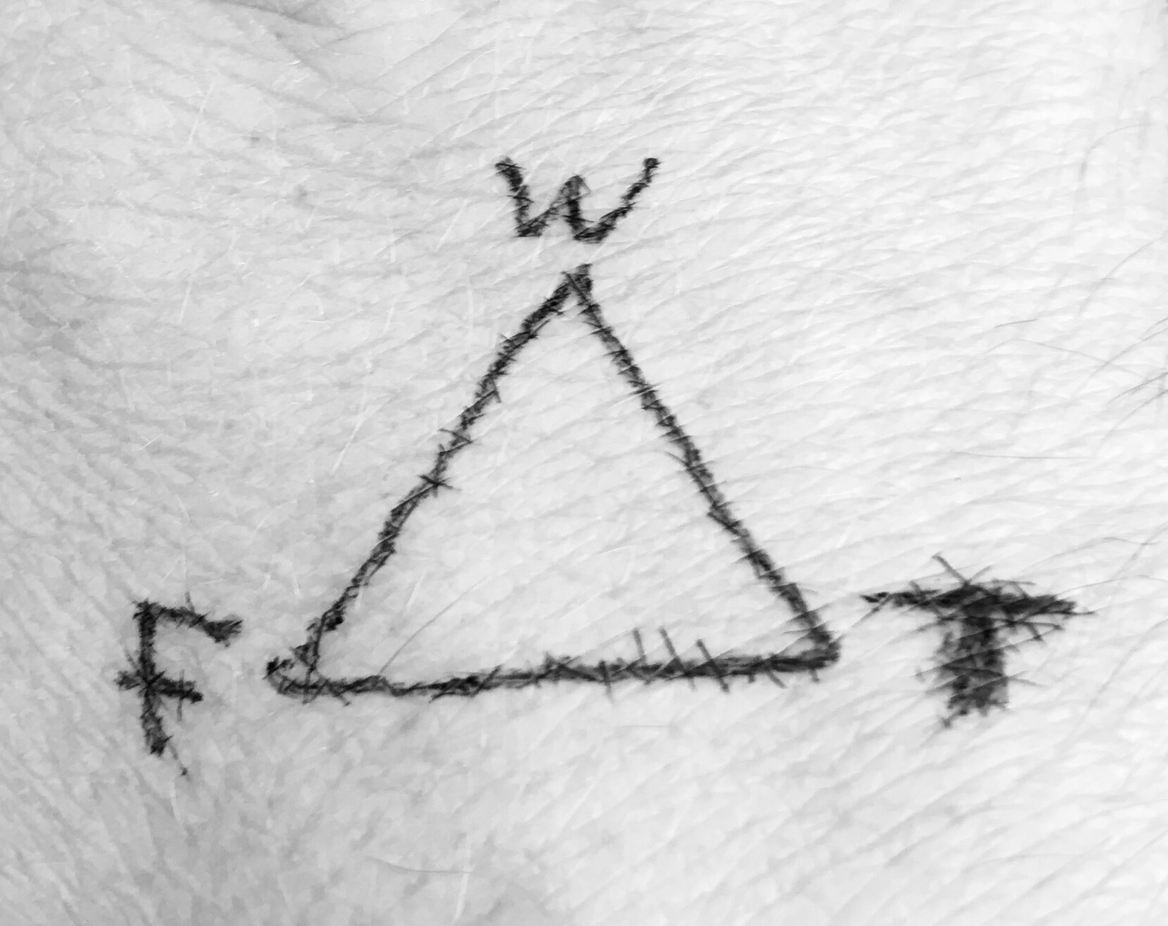 I know this like the back of my hand now, so here is a black and white picture of this triad I drew on the back of my hand to help you remember it: