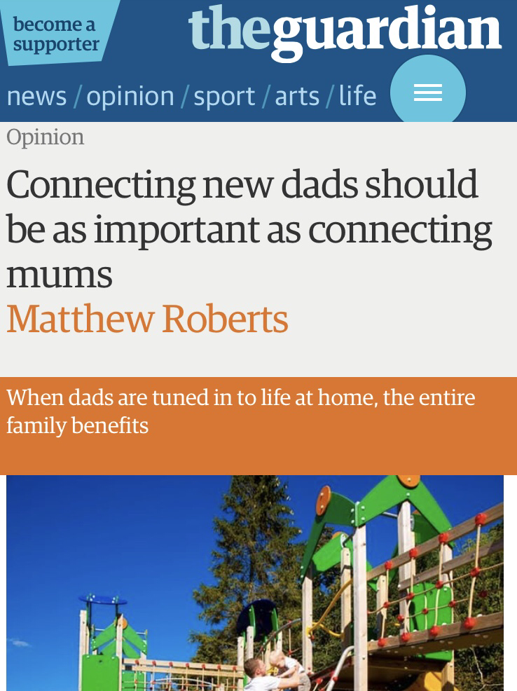 …which gave us a springboard to aim for the next piece to run first in mainstream media. It was swinging for the bleachers, and we feared striking out, but yesterday The Guardian published our piece on connecting dads. It’s already been seen by thousands, shared and commented upon by hundreds.