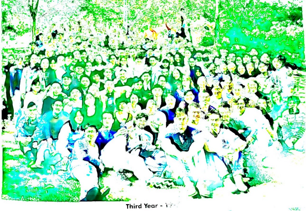 Bottom image: The last time our year level was together, 1997. Filtered with the aim that everyone looks as terrible as each other, and the now unbelievable youth on display is represented as a weird bluey green spread around diplomatically and democratically.